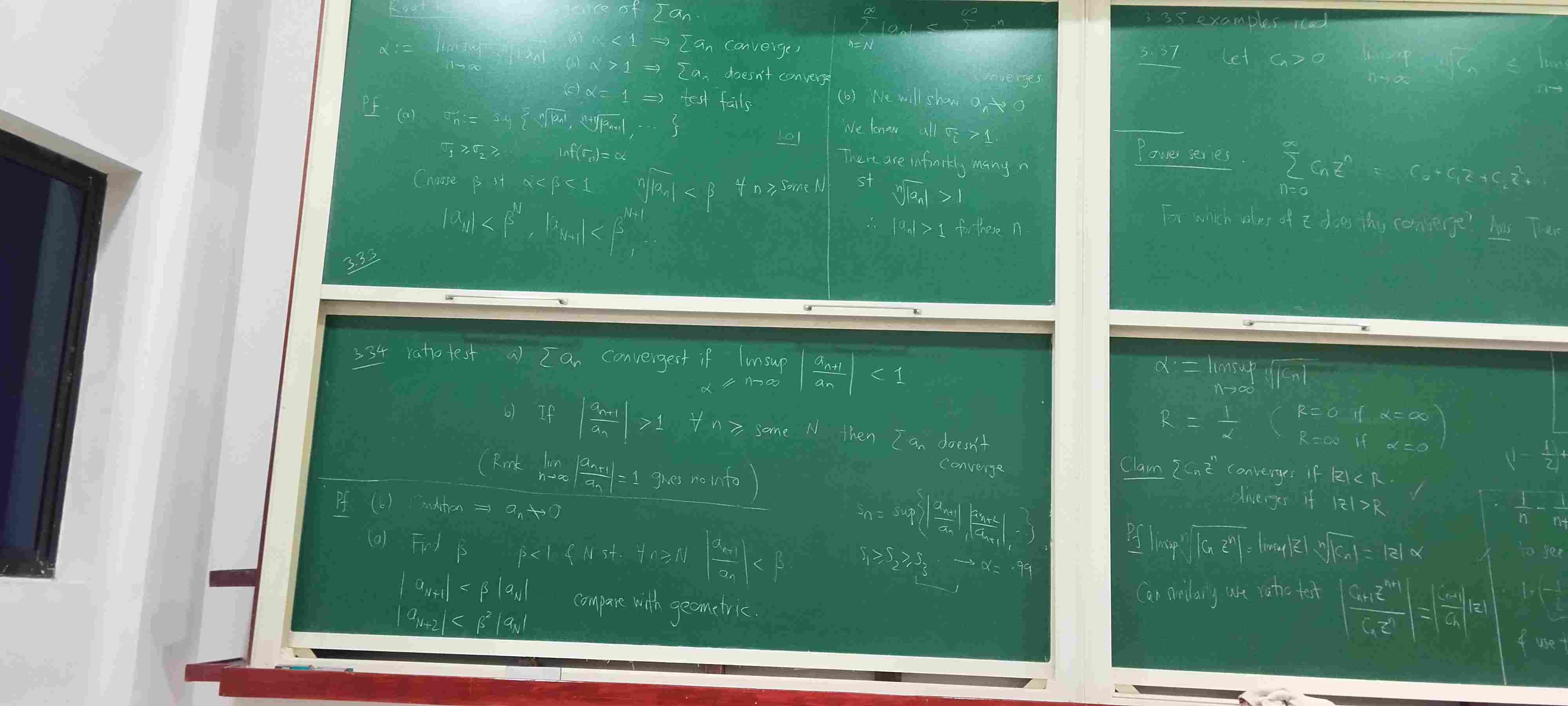 - The above theorem is not easily applicable on the series , since showing takes some work. It is much easier to use the ratio test: , for all . Thus, .